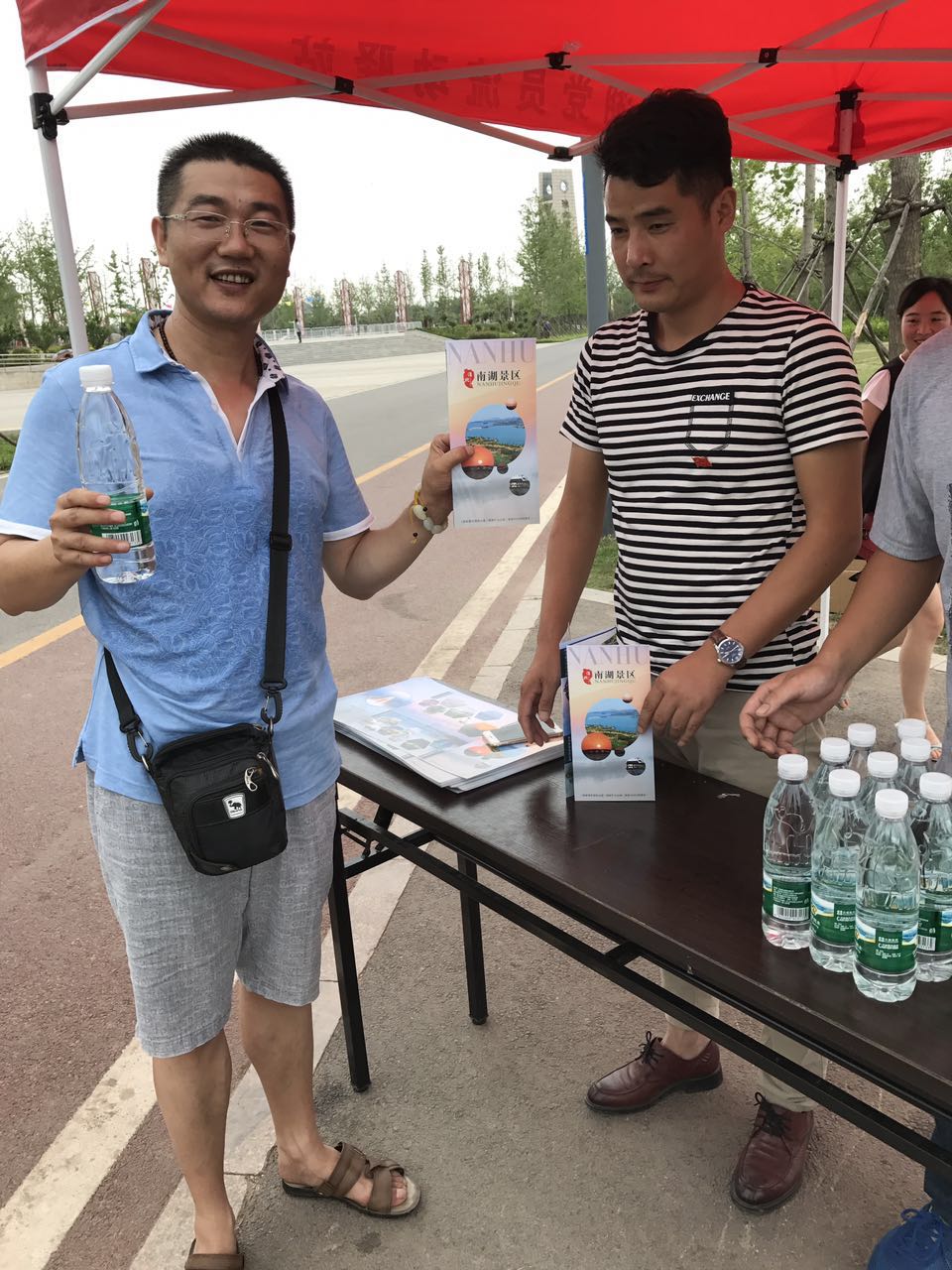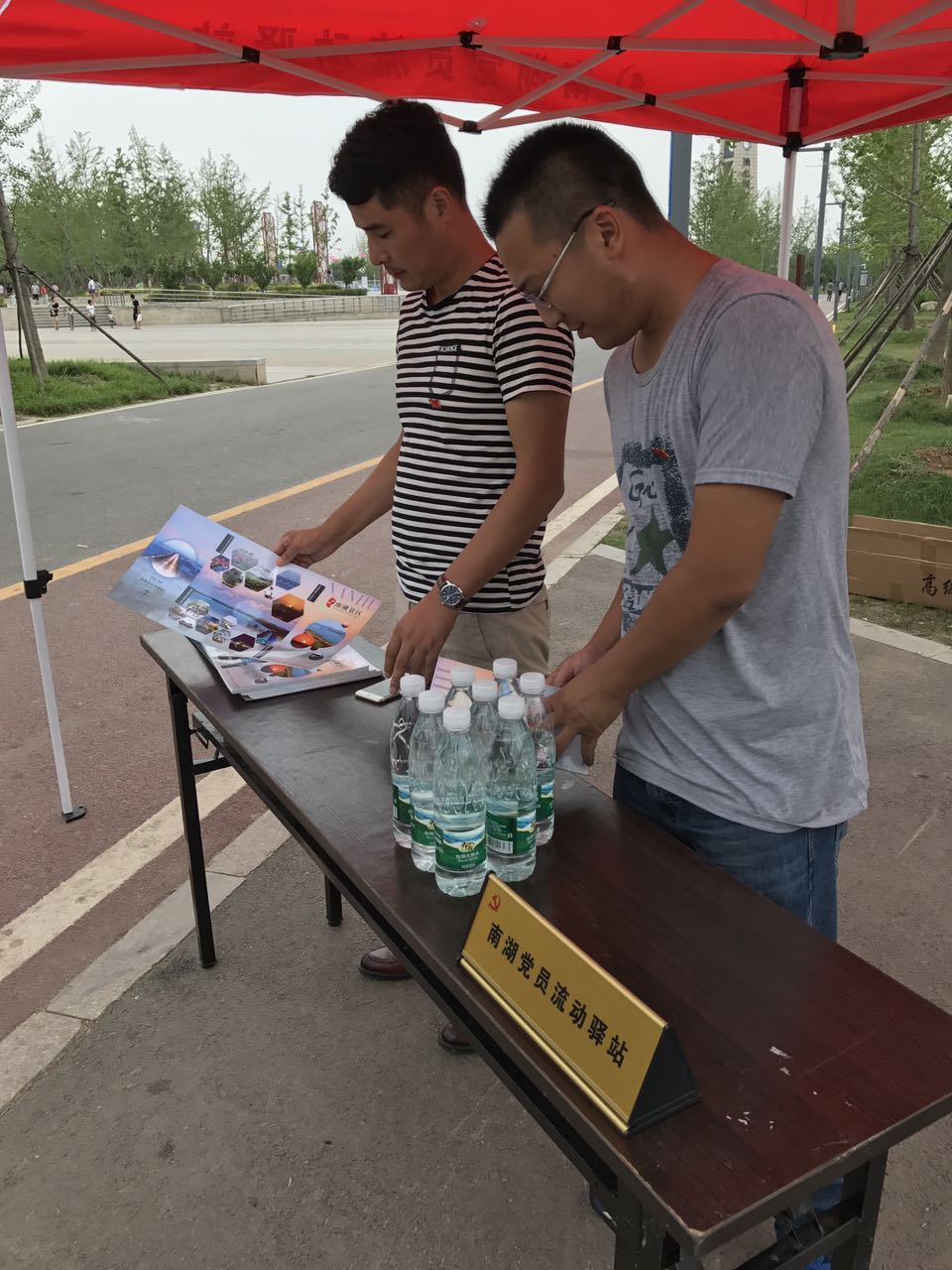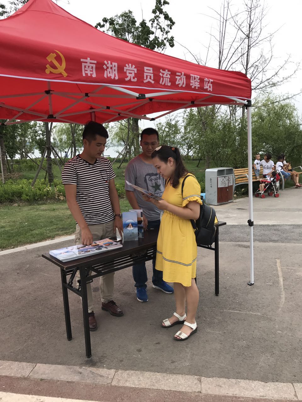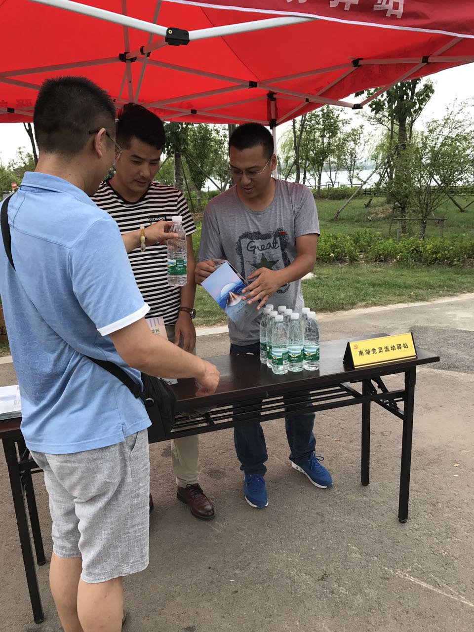 为了庆祝中国共产党诞辰96周年,7月1日,南投党支部通过“南湖党员流动驿站”组织党员深入景区,服务游客。在炎炎夏日为游客免费提供纯净水,并赠送南湖宣传册一份。一直以来,南投党支部结合景区实际情况,把“党旗更鲜艳、游客更满意”作为根本追求,帮游客解决遇到的实际困难和问题,以优质高效的服务,促进景区经济发展。让游客在欣赏美丽风景的同时,亲身体验南湖的党建工作和党员服务,享受不一样的品牌管理与服务,努力把南湖景区建设成为一个新型的现代旅游胜地。