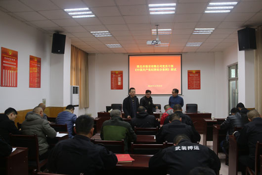 11月23日下午,淮北市保安有限公司党支部组织全体党员开展《中国共产党纪律处分条例》(以下简称条例)知识测试,全面考核党员干部对条例的学习情况。