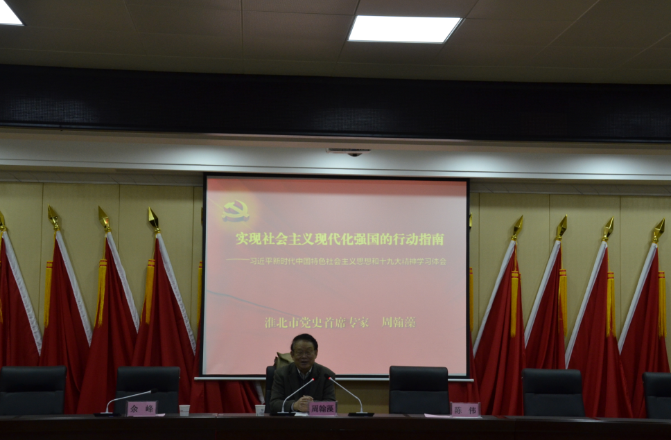 周翰藻同志以《实现社会主义现代化强国的行动指南》为题,从党史研究领域出发,深情回顾了中国共产党的诞生历程和成长史,就如何学好习近平新时代中国特色社会主义思想和党的十九大精神进行了深入讲解。