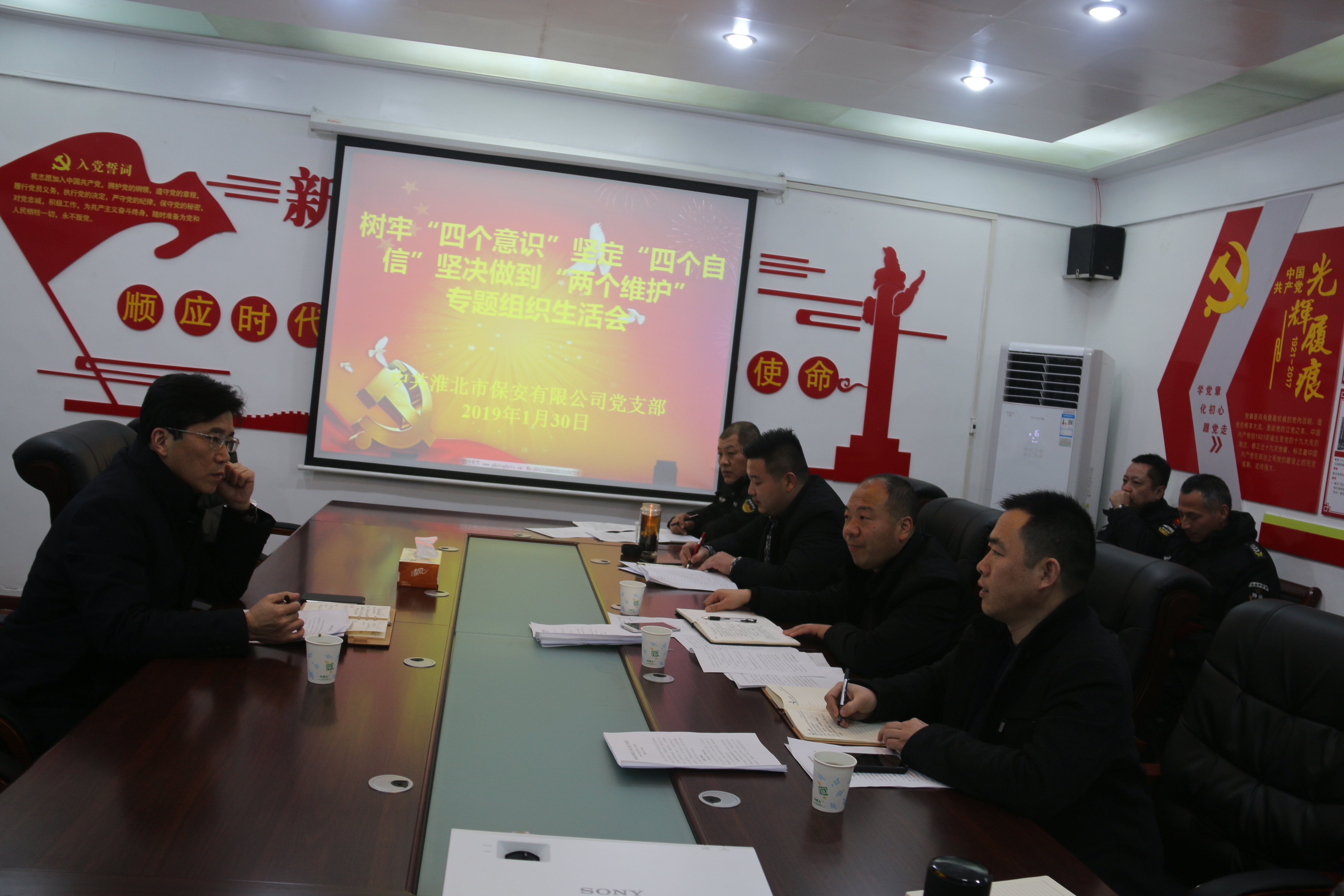 1月30日下午,淮北市保安公司党支部召开了2018年度树牢“四个意识”,坚定“四个自信”,坚决做到“两个维护”专题组织生活会。集团公司党委委员、纪委书记王献忠以普通党员的身份参加了会议,会议由保安公司党支部书记余永明主持。