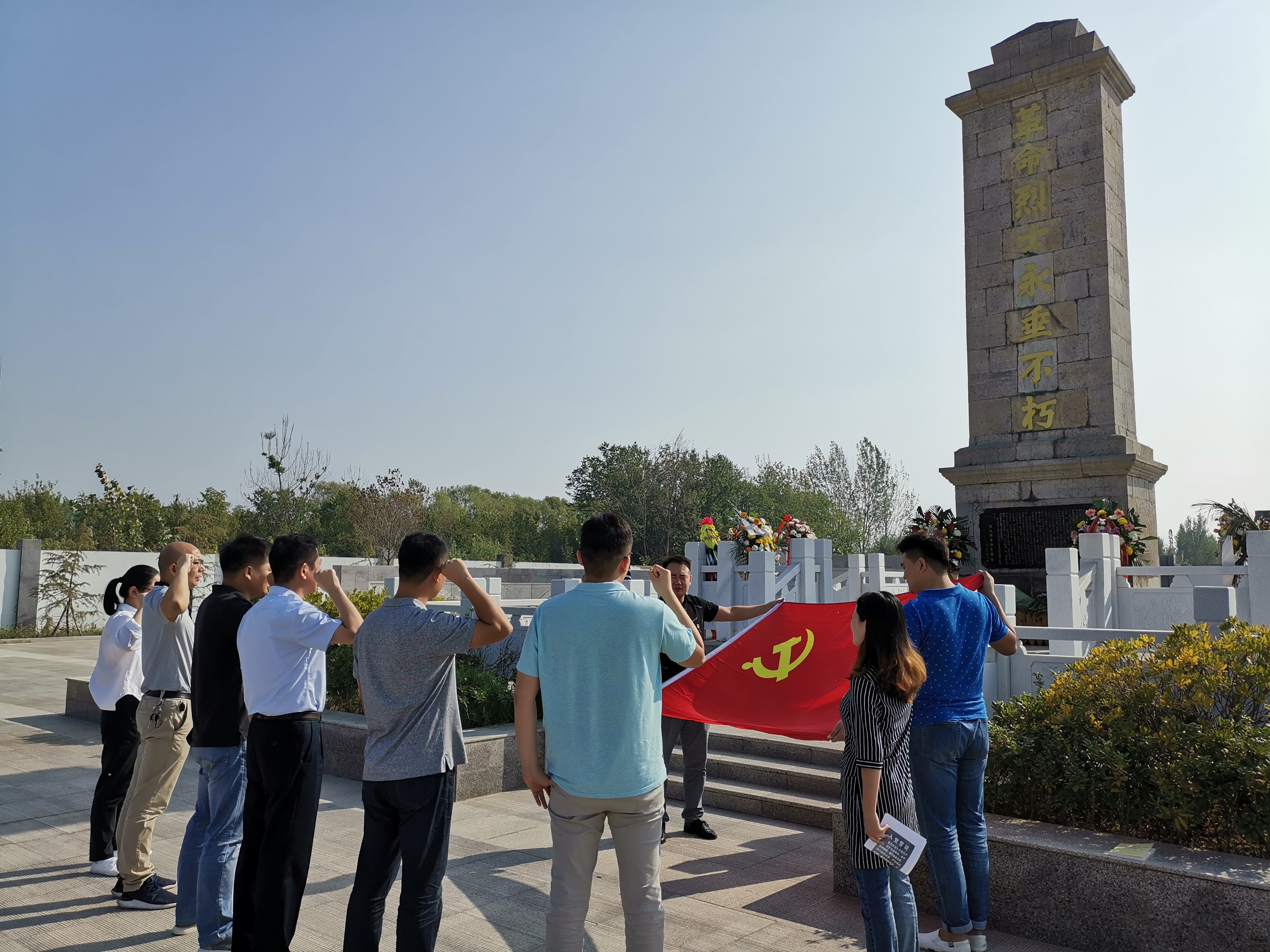 9月30日为烈士纪念日,商贸公司党支部在小朱庄烈士陵园举行“不忘初心,牢记使命”红色革命传统教育,支部党员及积极向党组织靠拢的同志参加活动。