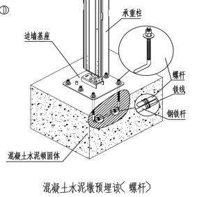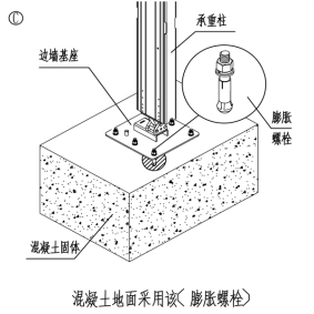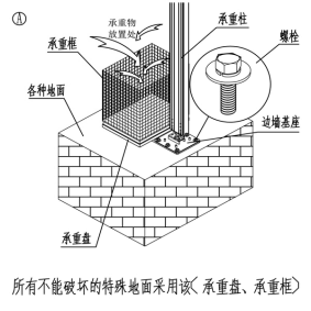 | (1) | 安装地点为水泥或沥青地面使用膨胀螺丝;(水泥厚度20-25厘米) | |