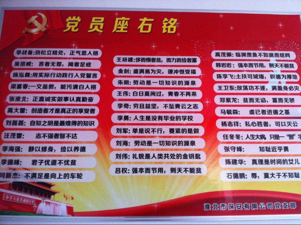 市保安公司党支部开展党员座右铭展示活动