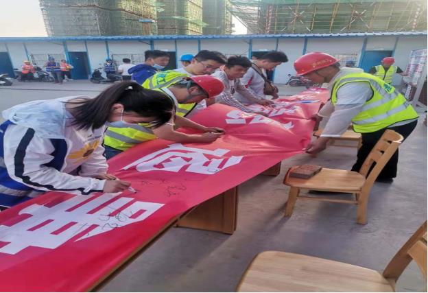 各项目部围绕“落实安全责任 推动安全发展”主题举行了“安全生产月启动仪式”,组织全体员工深入学习习近平总书记关于安全生产重要论述,收看《生命重于泰山——学习习近平总书记关于安全生产重要论述》电视专题片,召开誓师大会,举行宣誓和签字仪式,员工纷纷表示,要牢记安全誓词,铭刻安全理念,自觉履行岗位安全生产职责,确保全年安全生产形势稳定。