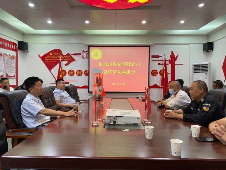 中国人民解放军建军94周年即将来临。 2021年7月30日,淮北市保安有限公司组织开展了退伍军人座谈会,忆往昔峥嵘岁月稠,看今朝奋进铸辉煌。公司共计约30人参加了座谈会,大家欢聚一堂,共话难忘的军旅生涯。